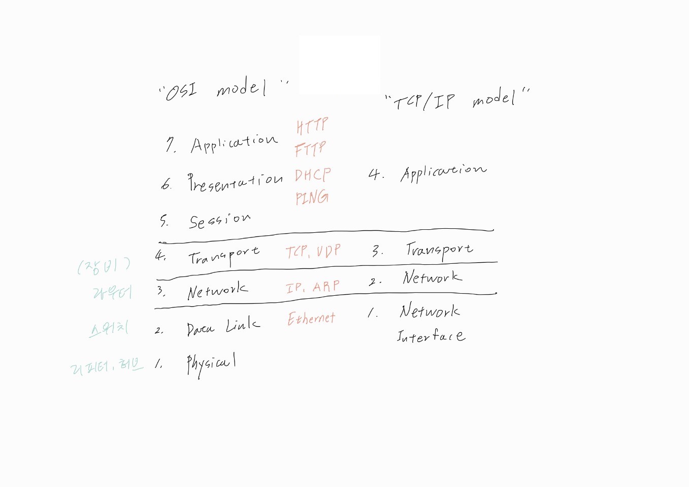 - 네트워크 참조 모델: 네트워크에서 통신중에 일어나는 여러 단계를 계층으로 나눠 표현한 것, 대표적으로 OSI 모델과 TCP/IP 모델이 있다.